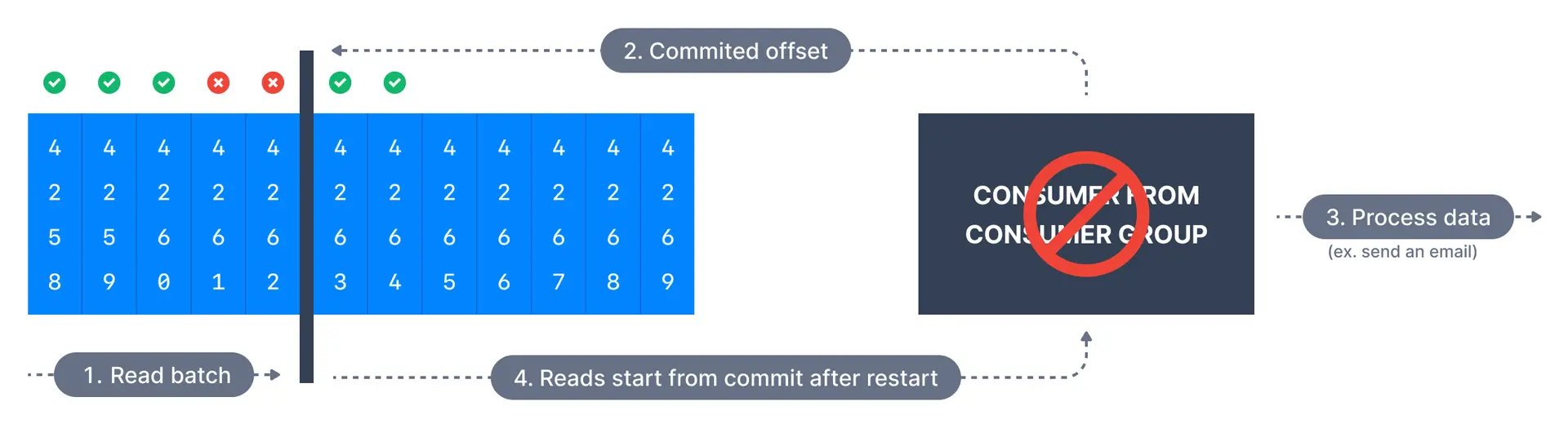 - 메시지 배치를 받자마자 오프셋을 커밋한다