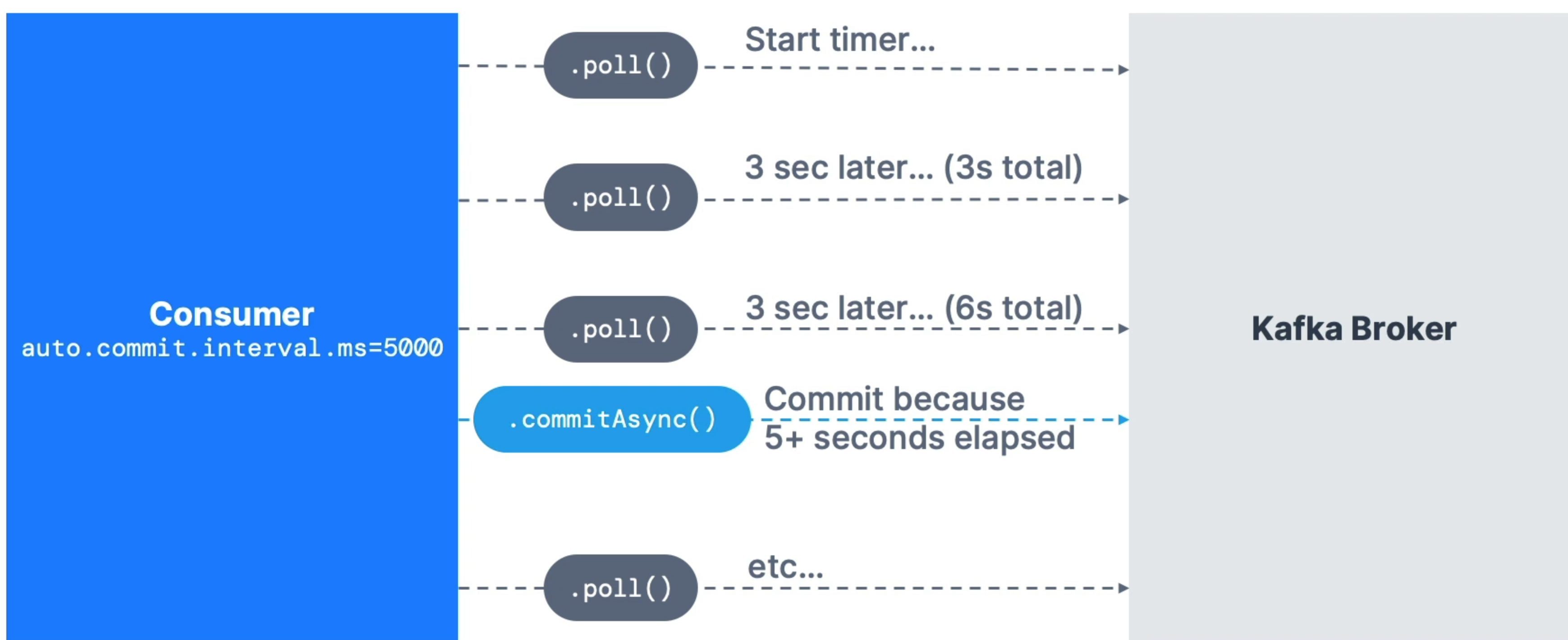 auto.commit.interval.ms가 5초인 경우 poll을 호출할 때마다 5초 간격으로 커밋된다