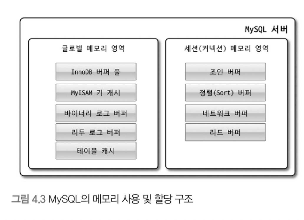 - 모든 메모리 공간은 MySQL서버가 시작되면서 운영체제로부터 할당된다