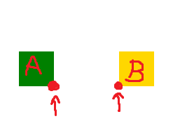 B의 위쪽 y좌표 - A의 아래쪽 y좌표 < 01번과 2번을 동시에 만족하면 충돌로 간주한다.