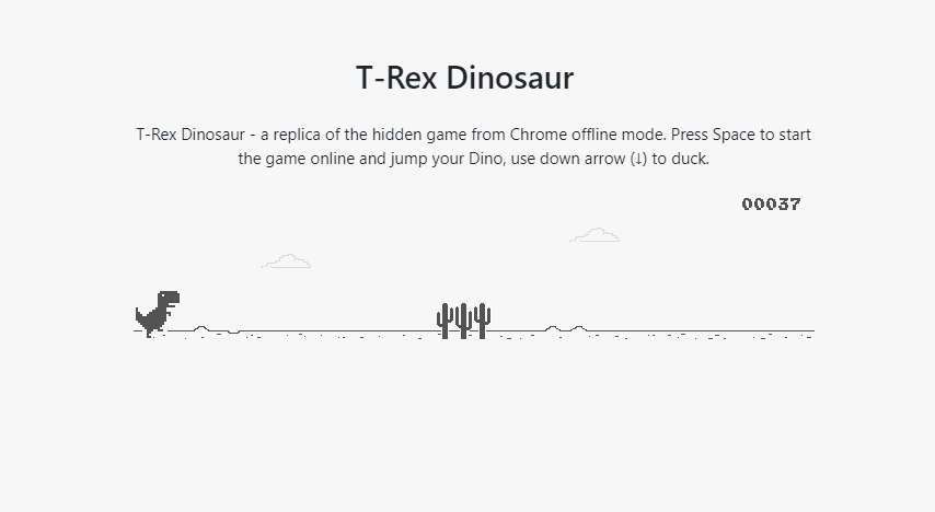 자바스크립트를 이용하여 공룡게임을 만들어보자. 장애물을 피하면서 달리는 간단한 게임이다.