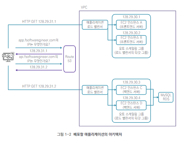 - (이 책에서는 웹 어플을 로컬이나 EC2가 제공하는 퍼블릭 도메인을 이용해 배포하는데서 그치지 않는다. 실제 프로덕션에서 어플을 운영하는데 필요한 기술과 어플의 스케일링에 몇 가지 기술을 구현한다. 로드밸런서 / 오토 스케일링 그룹 / 도메인 등록 및 HTTPS 설정 등)