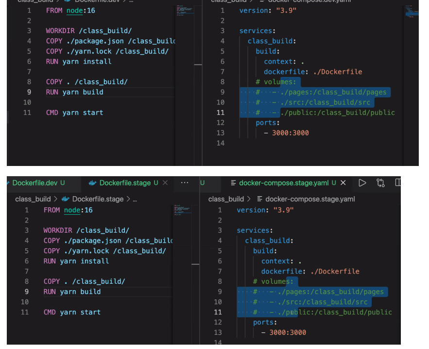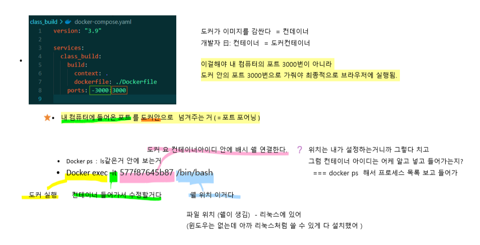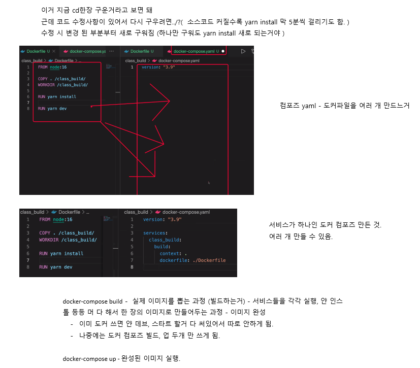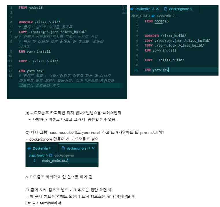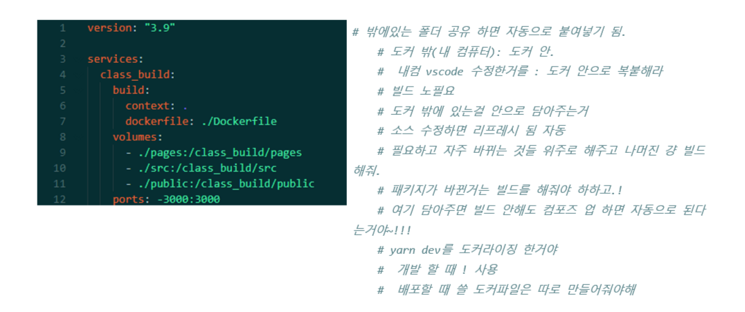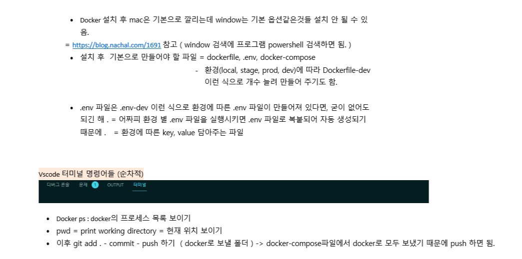 - docker 안에 node 등 기본 세팅 되어있어서 편리함 (다운받으면 공유해서 바로 쓸 수 있음)