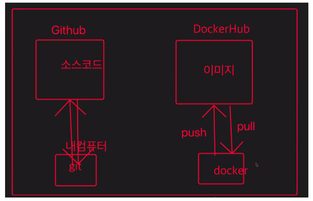 - docker에서의 container란? = 다양한 프로그램, 다양한 운영체제 및 실행환경 등을 컨테이너로 추상화하여 동일한 인터페이스를 제공하여, 배포 및 관리를 단순화 시켜주는 것