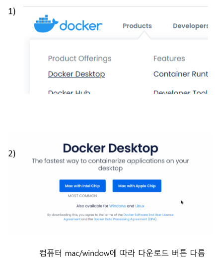 - 기존의 가상화 방식 : 각 가상 환경마다 독립된 os가 존재 = 무겁고 느림. 컴 성능과 환경이 제한됨.