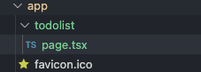 todolist를 만들어볼거라서 폴더를 만들고 page.tsx파일 추가해줌.