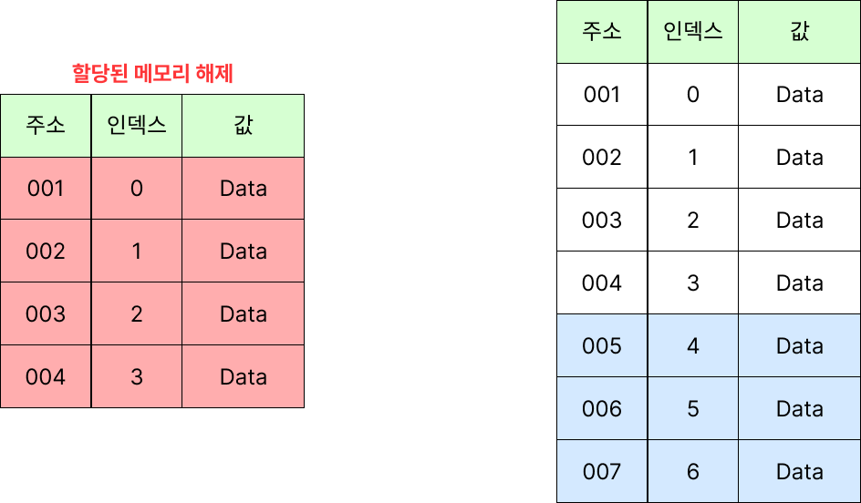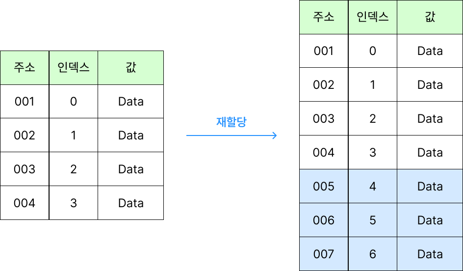 이 경우엔 새로운 Array를 할당받아 기존에 있는 데이터를 옮긴 후