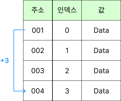 위 그림과 같이 0번 인덱스의 주소를 알고 있다면, 오프셋을 더하여 3번 인덱스의 위치를 찾아 저장된 값을 확인할 수 있습니다. 또한, 이를 이용하여 마지막 인덱스의 주소를 찾아 '삽입'을 수행할 수 있겠죠?