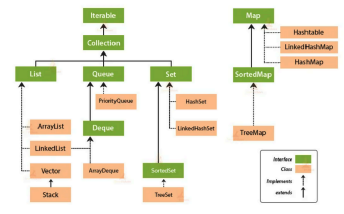 | 구현체 | ArrayList, LinkedList | HashSet, TreeSet, LinkedHashSet | HashMap, TreeMap, LinkedHashMap |