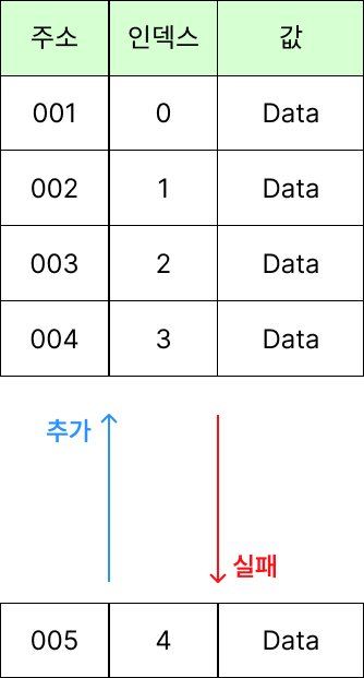기존 Array의 경우 위 그림과 같이 이미 할당한 크기를 넘어서는 데이터를 보관할 수 없습니다.