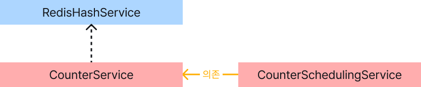 다음과 같이 RedisCounterService를 분리할 수 있지만, 현재는 Hash를 다른 용도로 사용할 예정이 없으므로 복잡도가 증가한다고 생각하여 이는 수행하지 않겠습니다.
