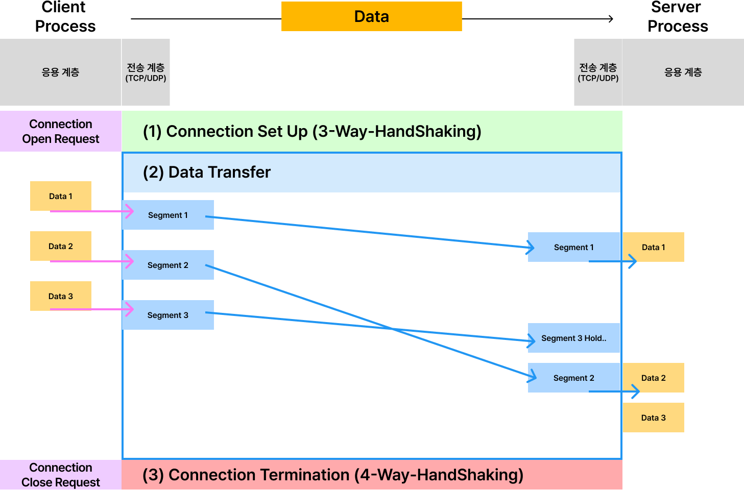 TCP 프로토콜은 다음과 그림과 같이 데이터를 전송합니다.