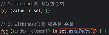 Kotlin에서는 아래와 같이 Set을 사용할 수 있습니다.