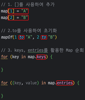 Kotlin에서는 아래와 같이 Map을 사용할 수 있습니다.