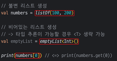 Kotlin에서는 아래와 같이 List를 을 사용할 수 있습니다.