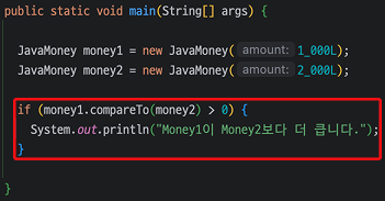 2개의 Money 클래스 가진 값에 대한 더하기 연산을 수행하기 위해선 Java의 경우 아래와 같이 코드를 작성합니다.