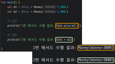 하지만, Kotlin에서는 아래와 같이 + 연산자를 활용해도 자동으로 plus() 메서드를 호출하여 동일한 동작을 수행합니다.