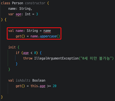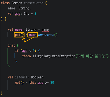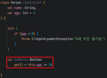 하지만, Kotlin에서는 아래와 같이 get()을 활용하여 함수가 아닌 Property처럼 구현할 수 있습니다.