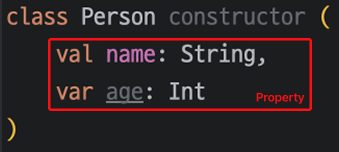 Kotlin에서는 아래와 같은 Constructor의 인자들을 Property라고 하는데, 이는 Field와 Getter, Setter를 모두를 포함하는 요소라는 의미를 지닙니다.