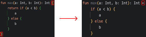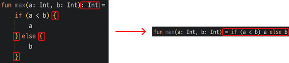 위와 같이 형태의 함수는 반환값의 타입이 명확한 경우 반환 타입을 생략할 수 있으며 if-else문의 중괄호도 생략 가능합니다. 예시는 아래와 같습니다.