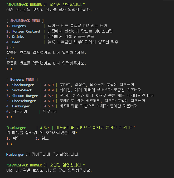 println("SHAKESHACK BURGER에 오신 것을 환영합니다.")