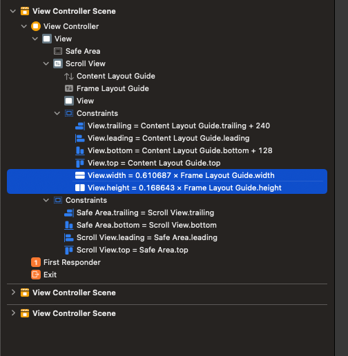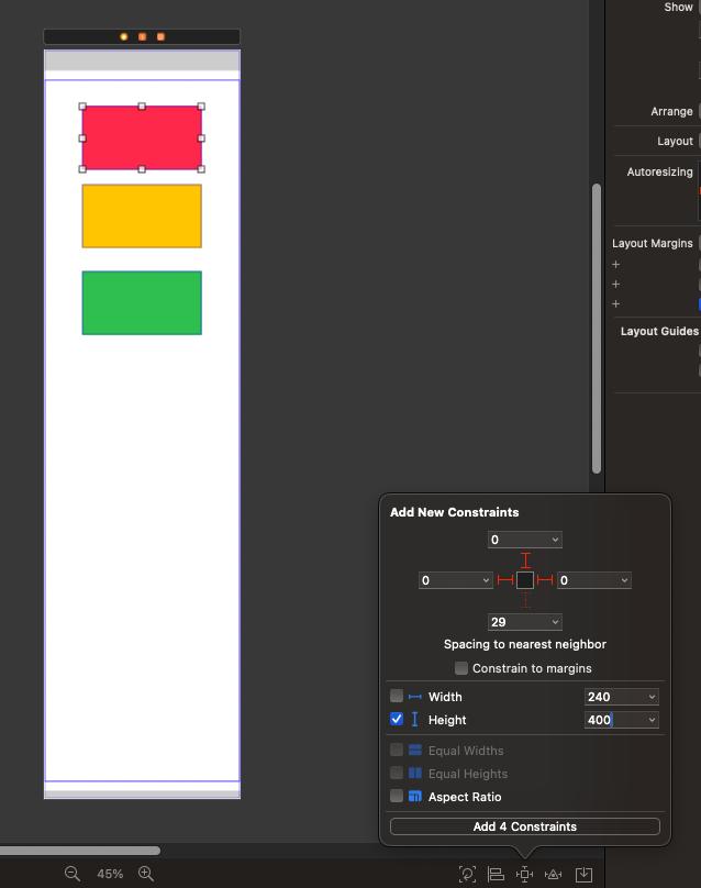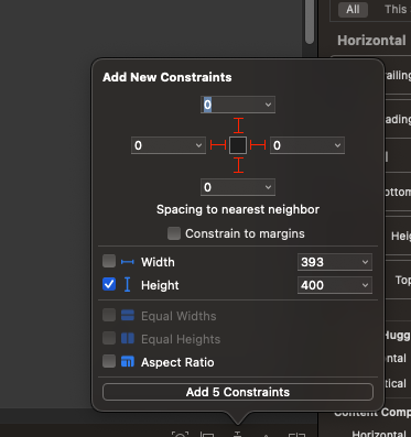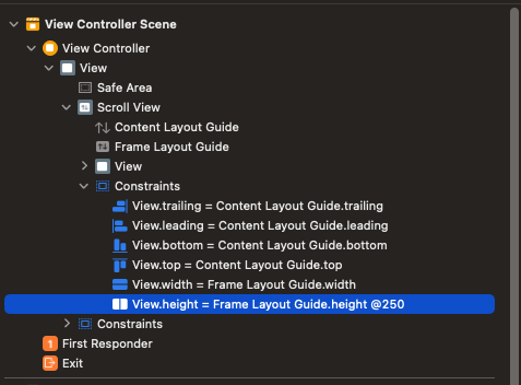 스크롤 뷰를 선택한 후 스토리보드 하단의 'Add New Constraints' 버튼을 클릭합니다.