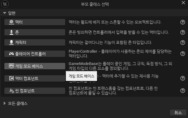 게임 모드 베이스를 선택