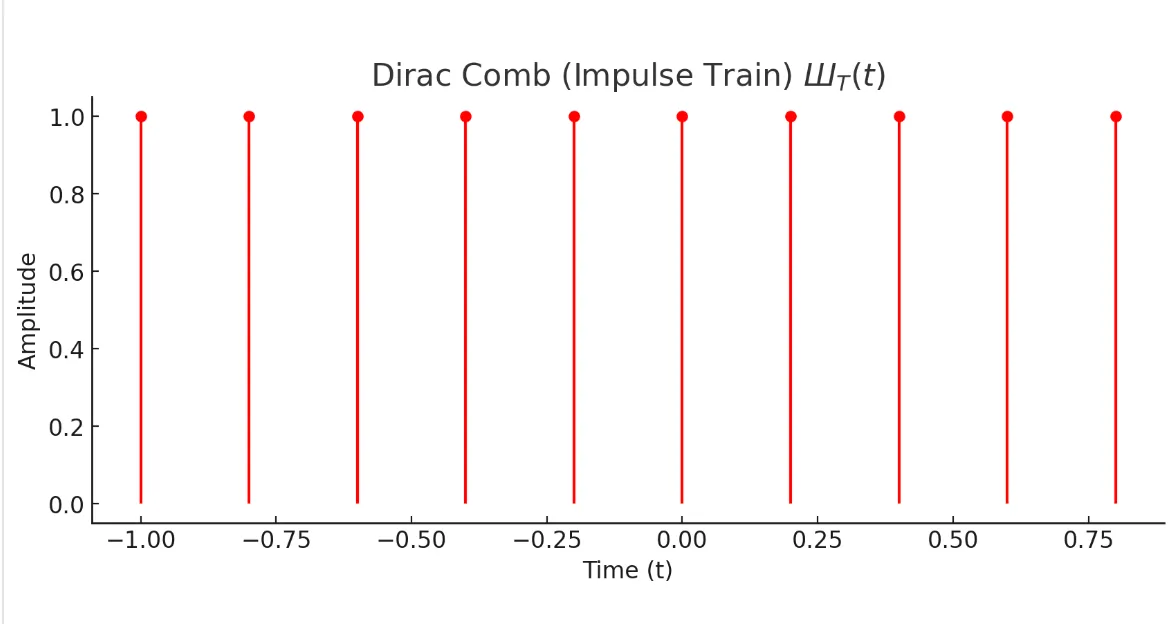 Dirac Comb ШT(t)의 푸리에 변환은 또 다른 Dirac Comb 형태로 나타난다:
