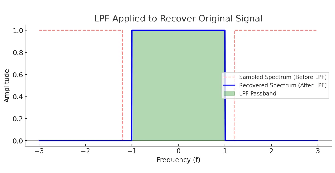 샘플링 전에 불필요한 고주파 성분을 제거한다. 이러면 fmax 값이 작아지니까 나이퀴스트 부등식 fs≥2fmax을 만족하기 쉽게 만들어준다. 즉 샘플링 후 주파수 스펙트럼이 깔끔하게 반복되도록 정리하는 역할이다.