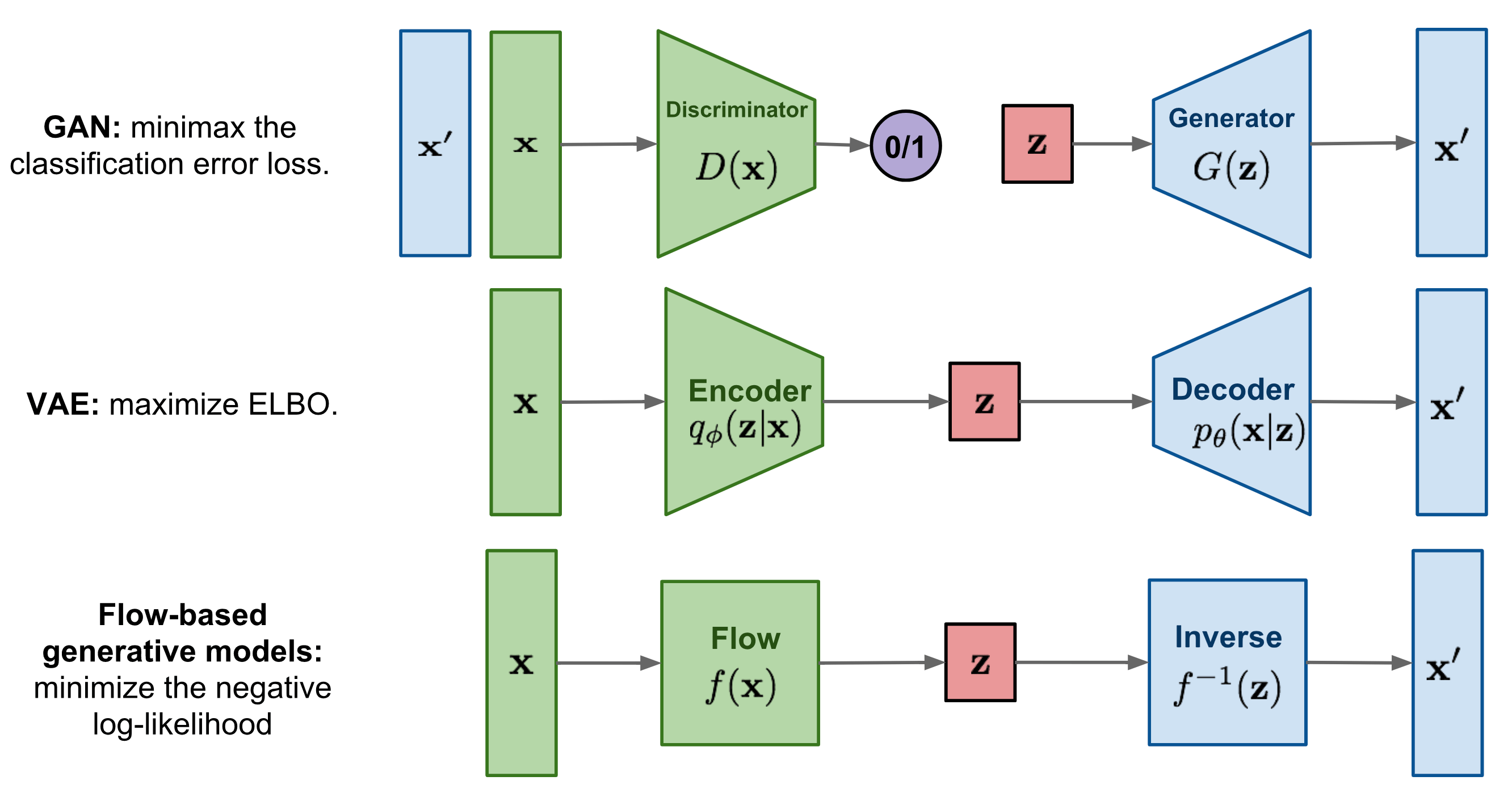 단순한 분포(예: Gaussian)를 복잡한 데이터 분포로 변환할 수 있는, 역변환 가능한 함수 구조를 설계하고 그 내부 파라미터를 학습하는 모델인거시다.