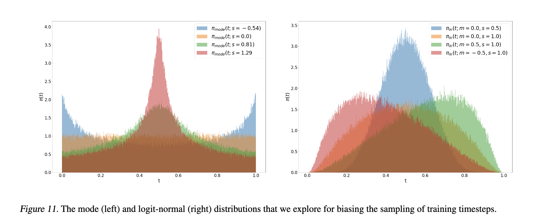 Recitified Flow 학습을 위해 perceptually relevant scales에 맞춰 샘플링 편향이 될 수 있도록 샘플링 방식을 개선