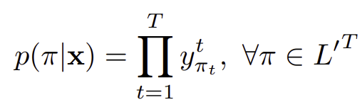 이때 CTC에서는 각 state 별로 독립이라고 가정하기 때문에 한 path의 확률을 구하기 위해서는