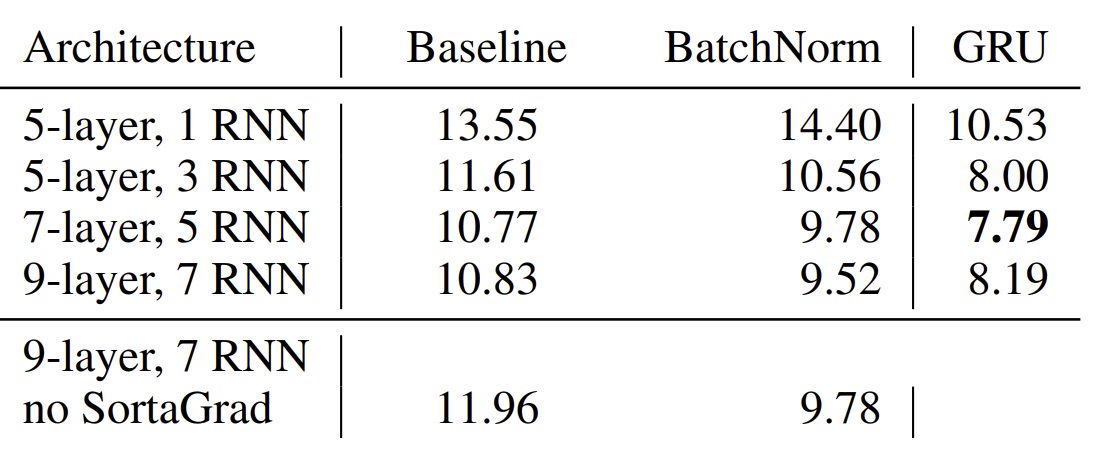 sequence-wise를 적용했을때 no-batch norm 보다 빠르게 수렴하며 성능도 좋다.