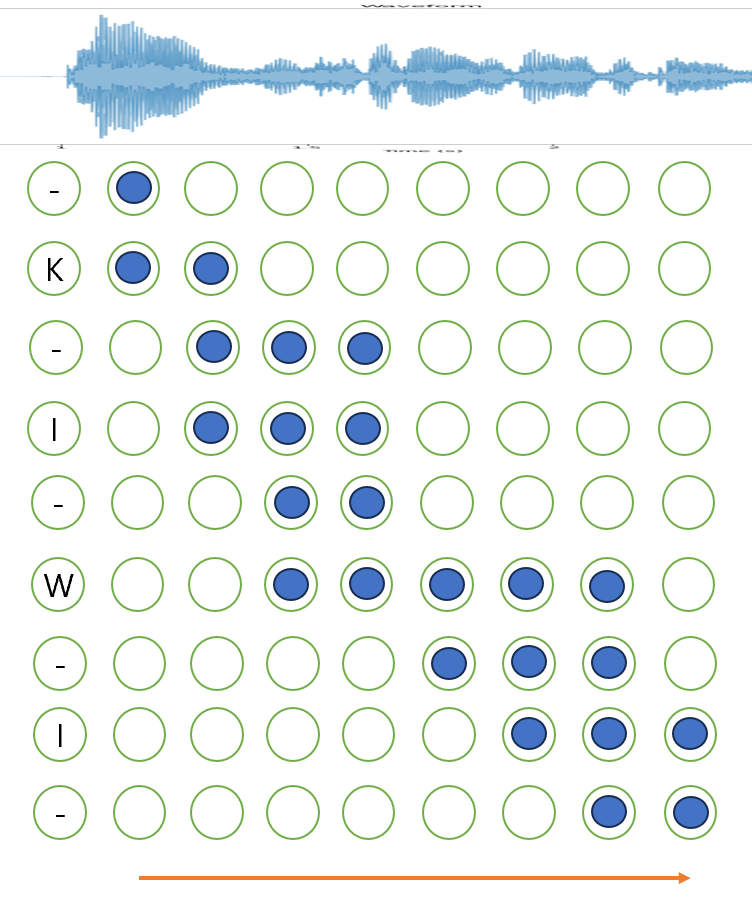 결국 KIWI 에 대한 확률은 그림에서 가능한 대응되는 CTC score는