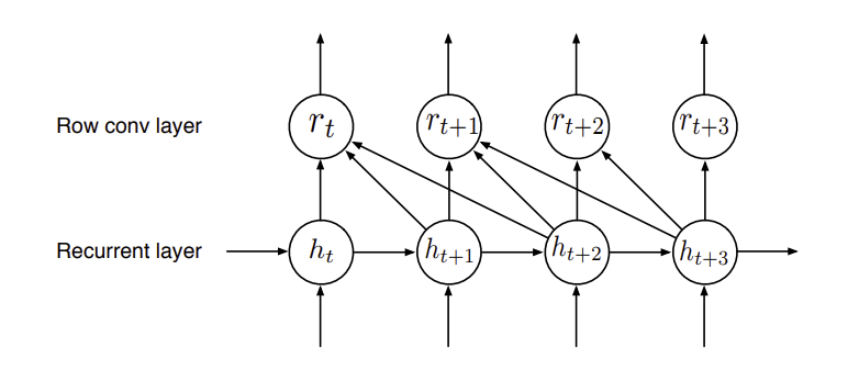 미래의 context를 반영하는 lookahead convolution을 적용한다