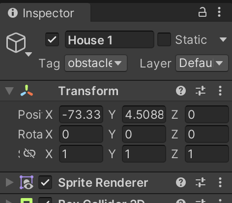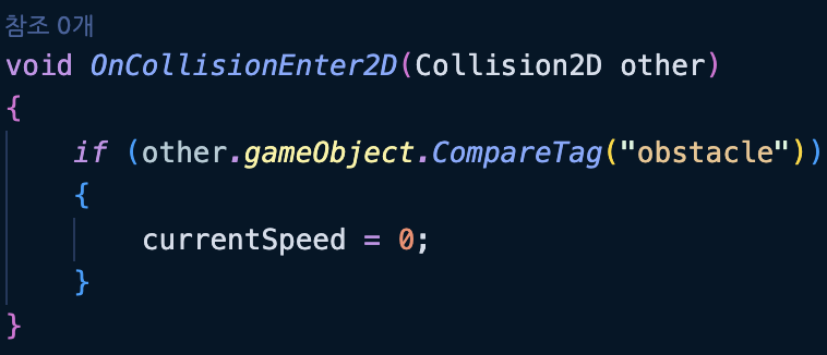 부딪쳤을때 속도를 줄이는 오브젝트들은 obstacle 태그를 붙이기