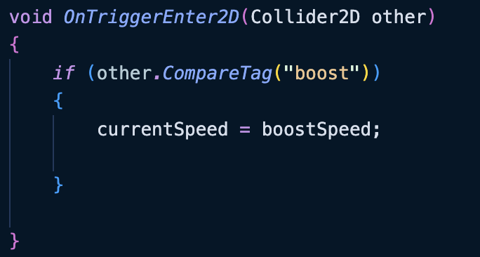 boost 트리거에 닿으면 속도를 boostSpeed로 바꾸는 코드 작성