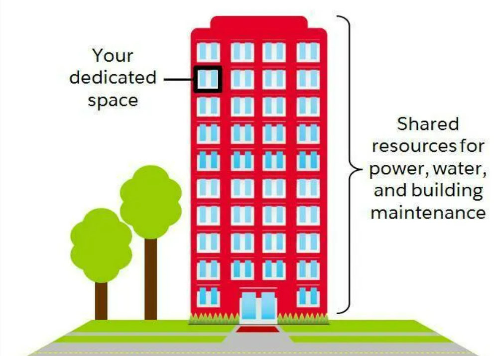 아파트를 예로 설명하자면 입주민들이 물과 전력, 그리고 건물등을 공유하는 상황으로 비유할 수 있겠네요.