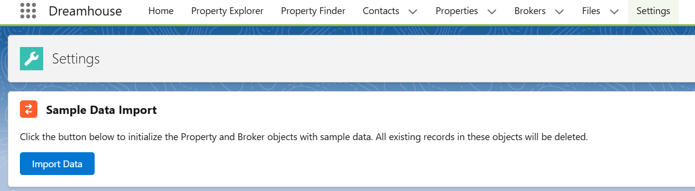 먼저 세팅에서 Import Data를 통해서 샘플 데이터를 Import 해줍니다.