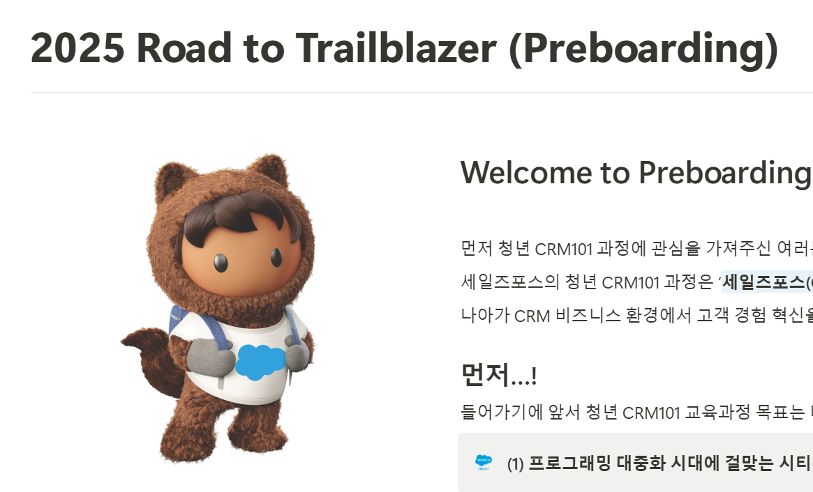 이번 시리즈에서 다뤄볼 내용은 사전교육 과정인 Road to Trailblazer에 대한 내용인데요, 아마 CRM101 과정에 합류하게 된다면 시리즈가 더 길어질수도 있겠네요.