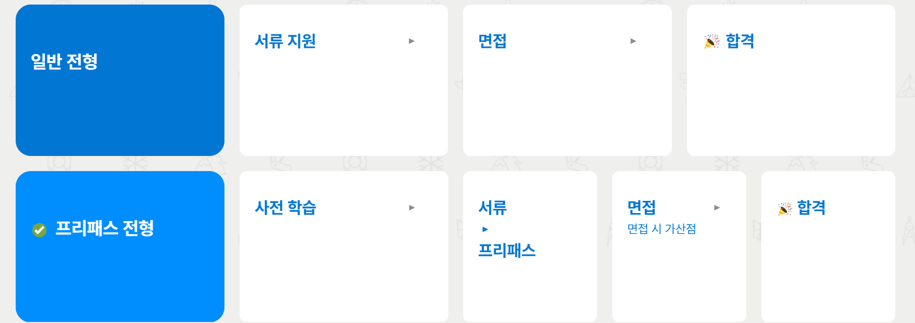 CRM101 과정은 두가지 전형이 존재하는데요, 특이하게 프리패스 전형이 존재합니다. 바로 사전학습을 완료하면 서류전형 패스와 면접 가산점이라는 혜택을 준다고 합니다.