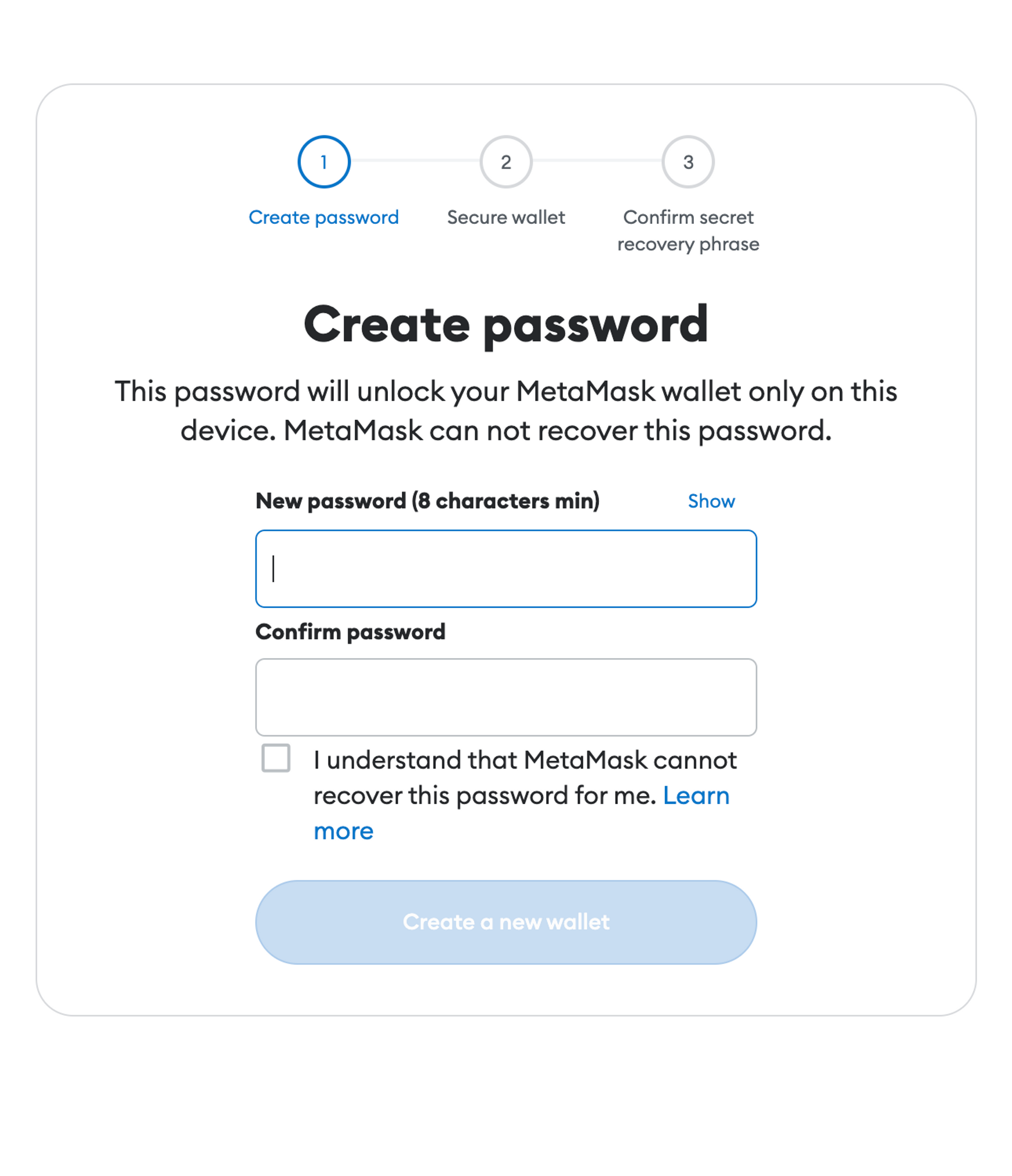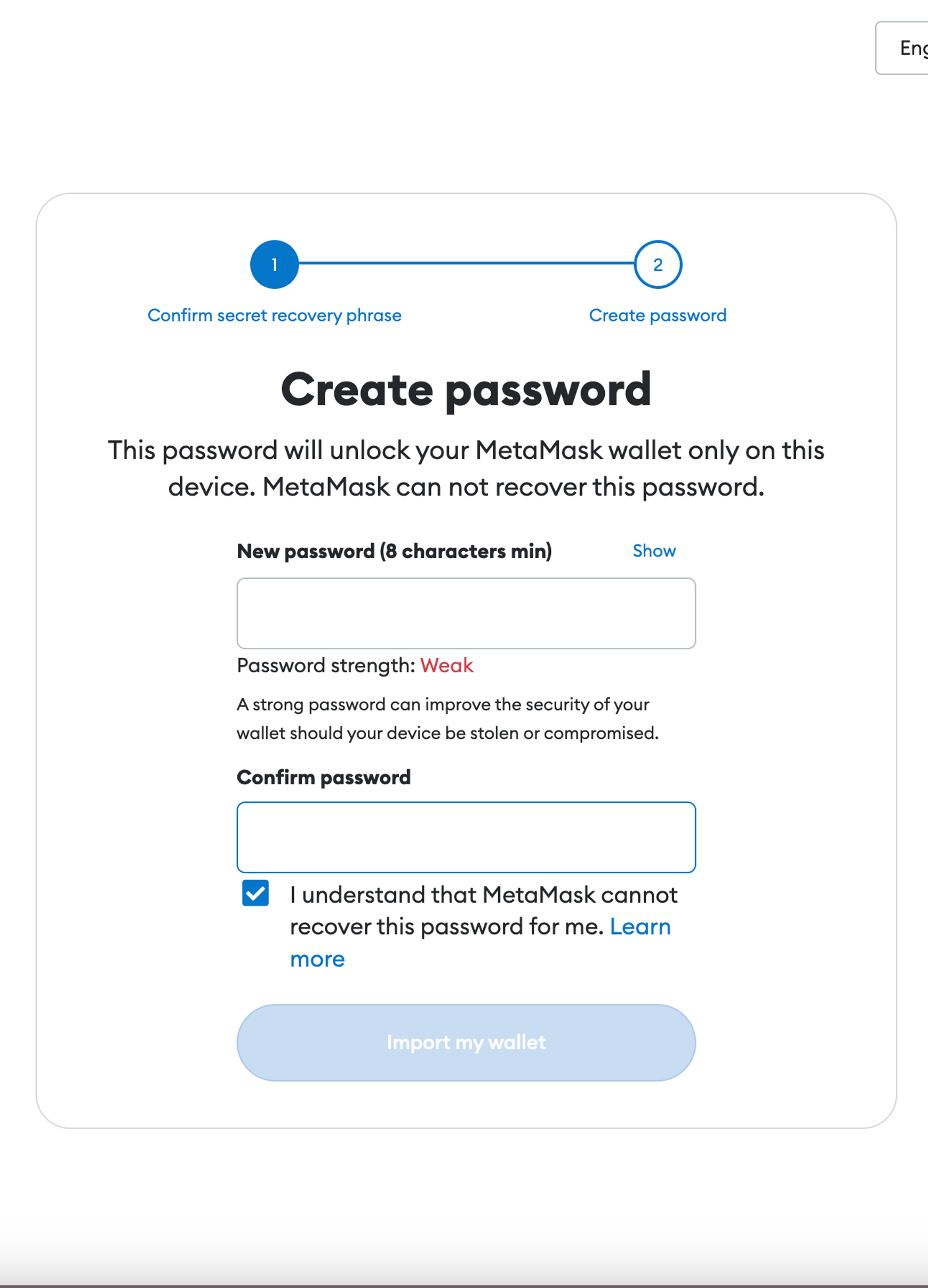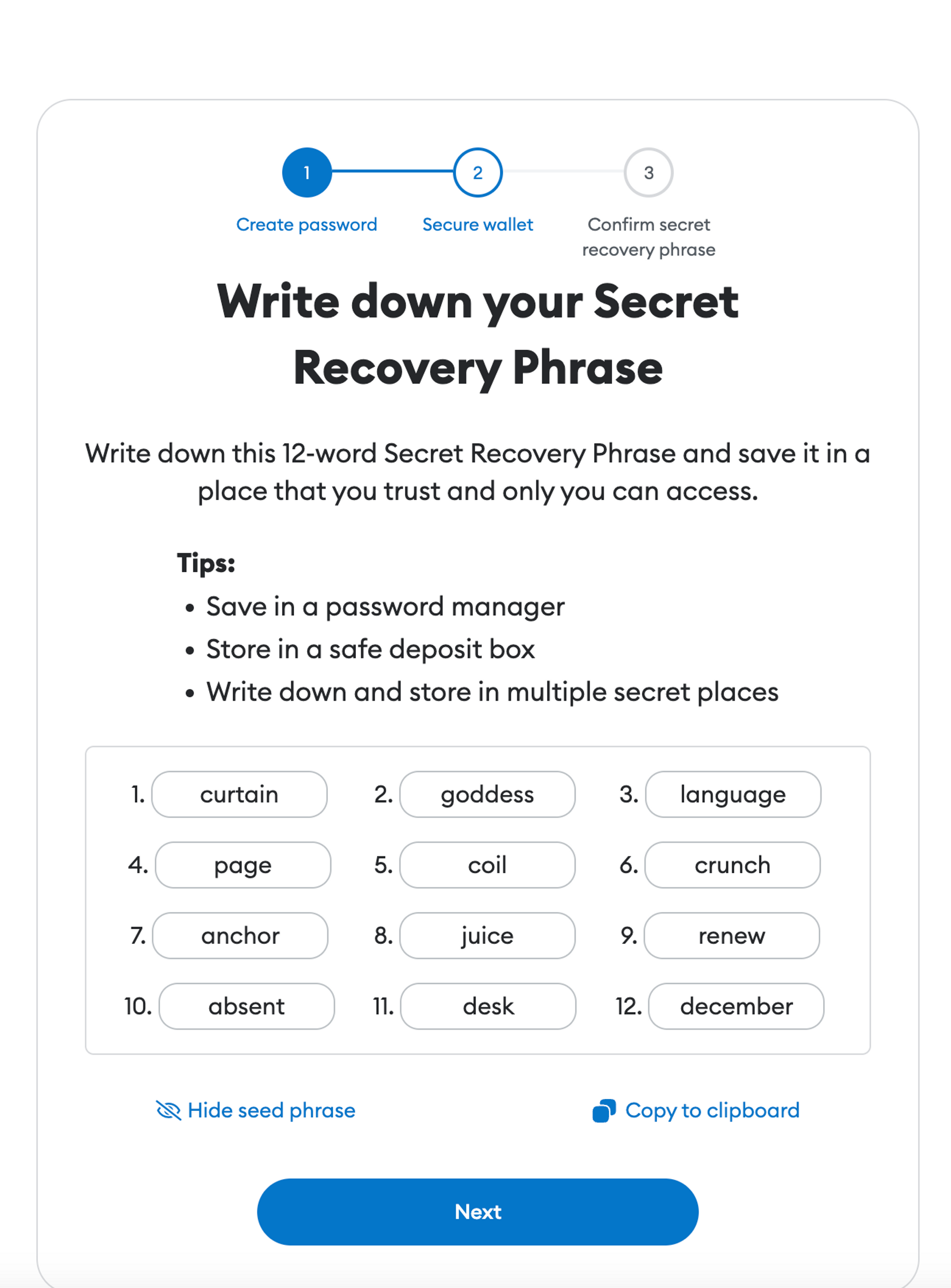 2. 다음으로, 지갑을 보호하기 위한 뉴모닉 구절을 생성한다.