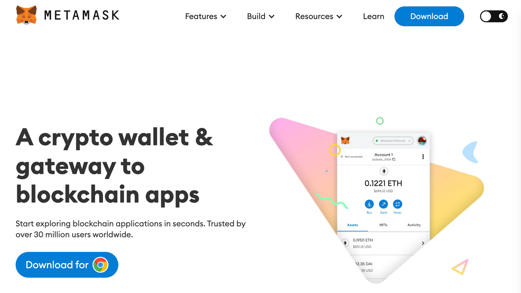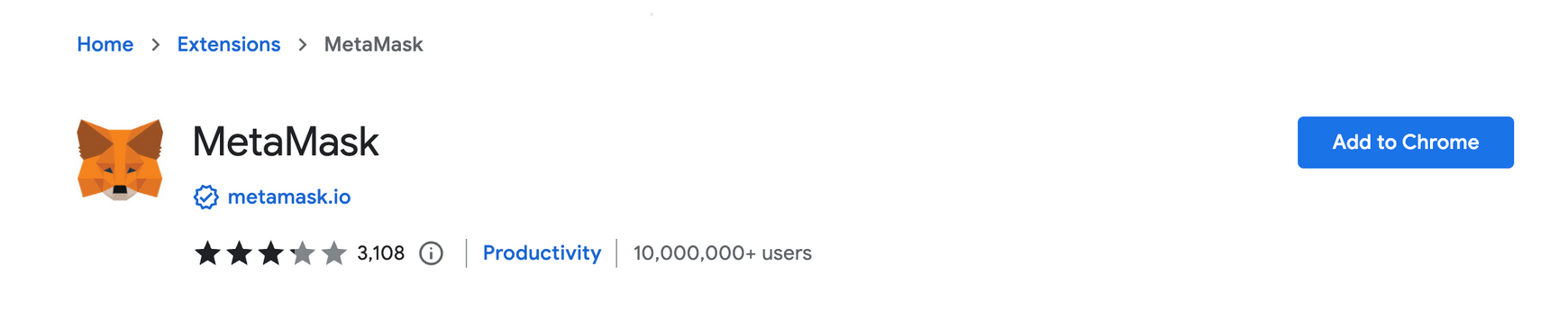 먼저, https://metamask.io/ 에 접속해 “Download for chrome” 버튼을 클릭해 메타마스크 extension을 설치한다.