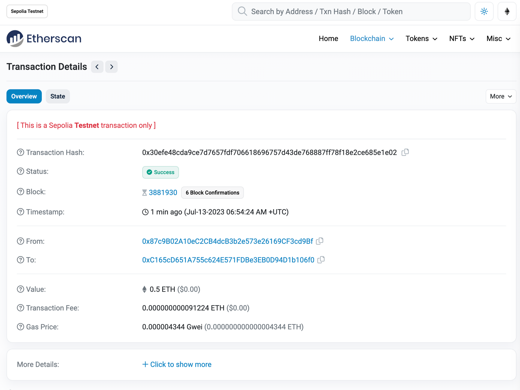 | 0.5 ETH가 | 해당 내역을 클릭하면 이렇게 자세히 뜸 |