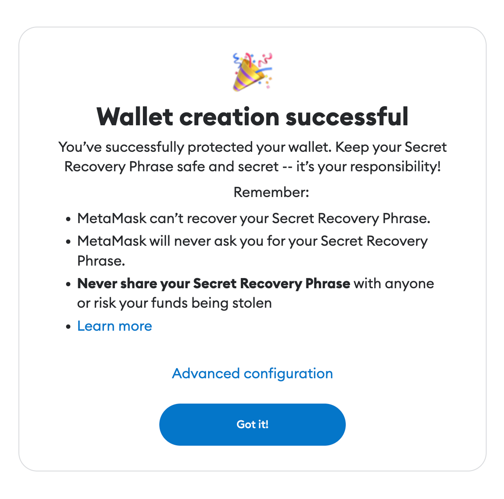 🥳 여기까지 따라왔으면 지갑 생성은 성공적입니다! 🥳