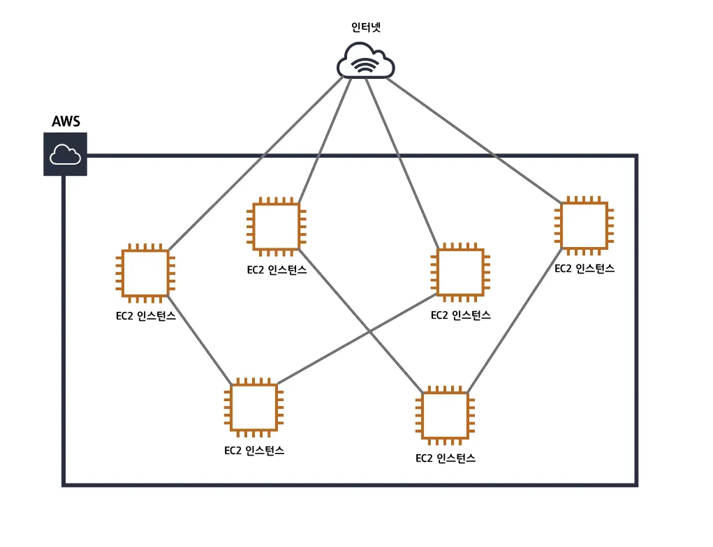 만약 VPC가 존재하지 않는다면 EC2 인스턴스들이 서로 거미줄처럼 연결되고 인터넷과 연결된다. 이러면 매우 불편하고 시스템의 복잡도가 증가할 것이다. 따라서 VPC는 AWS에서 중요한 개념이라고 한다.