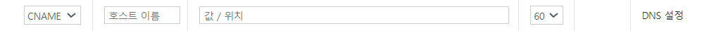 타입을 CNAME으로 바꾸고, 복사한 값을 순서대로 '호스트 이름'과 '값/위치'에 붙여넣으면 된다.