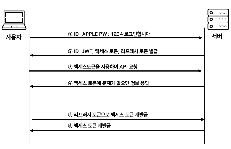 Header, PayLoad, Signature๋ฅผ ์ ์Hedaer, PayLoad, Signature๋ฅผ ๊ฐ๊ฐ Base64๋ก ํ ๋ฒ ๋ ์ํธํํ์ฌ JWT๋ฅผ ์์ฑํ๊ณ ์ด๋ฅผ ์ฟ ํค์ ๋ด์ ํด๋ผ์ด์ธํธ์๊ฒ ๋ฐ๊ธAuthorization header์ Access Token์ ๋ด์์ ์์ฒญHeader์ ๋ด์์ ๋ณด๋ธ JWT๊ฐ ๋ด ์๋ฒ์์ ๋ฐํํ ํ ํฐ์ธ์ง ์ผ์น ์ฌ๋ถ๋ฅผ ํ์ธํ์ฌ ์ผ์นํ๋ค๋ฉด ์ธ์ฆ์ ํต๊ณผ์์ผ์ฃผ๊ณ ์๋๋ผ๋ฉด ํต๊ณผ์ํค์ง ์์ผ๋ฉด ๋๋ค.๐ค ์๋ฒ๋ ํ ํฐ ์์ ๋ค์ด์๋ ์ ๋ณด๊ฐ ๋ฌด์์ธ์ง ์๋๊ฒ ์ค์ํ ๊ฒ์ด ์๋๋ผ ํด๋น ํ ํฐ์ด ์ ํจํ ํ ํฐ์ธ์ง ํ์ธํ๋ ๊ฒ์ด ์ค์ํ๊ธฐ ๋๋ฌธ์, ํด๋ผ์ด์ธํธ๋ก๋ถํฐ ๋ฐ์ JWT์ ํค๋, ํ์ด๋ก๋๋ฅผ ์๋ฒ์ key๊ฐ์ ์ด์ฉํด ์๊ทธ๋์ฒ๋ฅผ ๋ค์ ๋ง๋ค๊ณ ์ด๋ฅผ ๋น๊ตํ๋ฉฐ ์ผ์นํ์ ๊ฒฝ์ฐ ์ธ์ฆ์ ํต๊ณผ