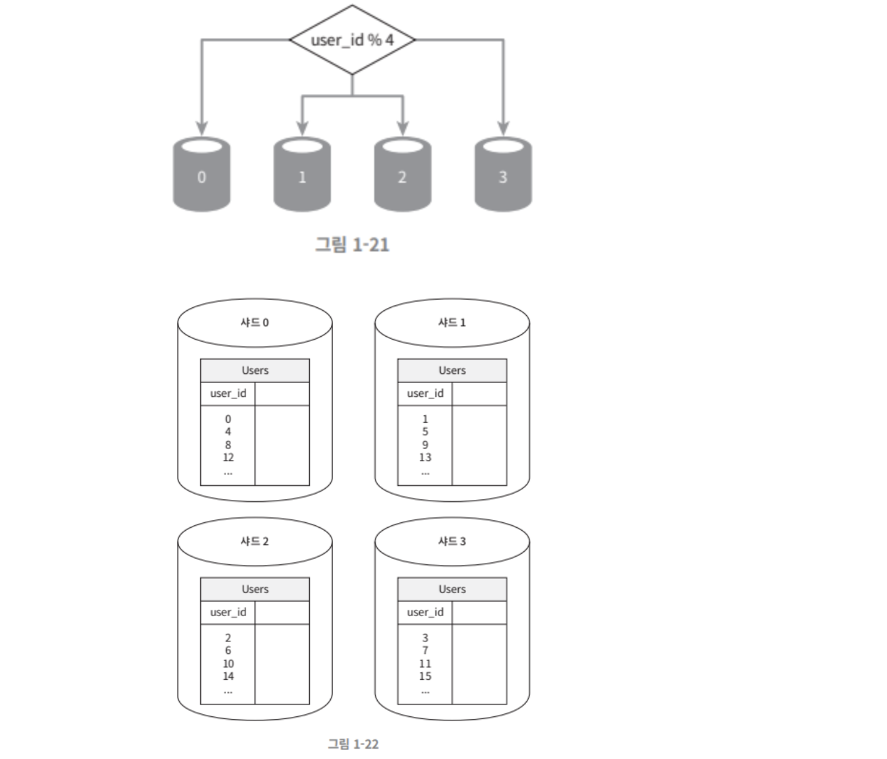 ์์ ๊ทธ๋ฆผ์ user_id ๊ฐ์ ๋ฐ๋ผ ์ค๋์ ๋ฐ์ดํฐ๋ฅผ ๋ฃ๋ ๊ธฐ์ค์ ์ ํ๋ค. ์๋ฅผ ๋ค๋ฉด, user_id %4๋ฅผ ํด์ ํจ์๋ก ์ฌ์ฉํ์ฌ ๋ฐ์ดํฐ๊ฐ ๋ณด๊ด๋๋ ์ค๋๋ฅผ ์ ํ ์ ์๋ค. ๊ฒฐ๊ณผ๊ฐ 0์ด๋ผ๋ฉด 0๋ฒ ์ค๋์ ๋ฃ๋๋ค.