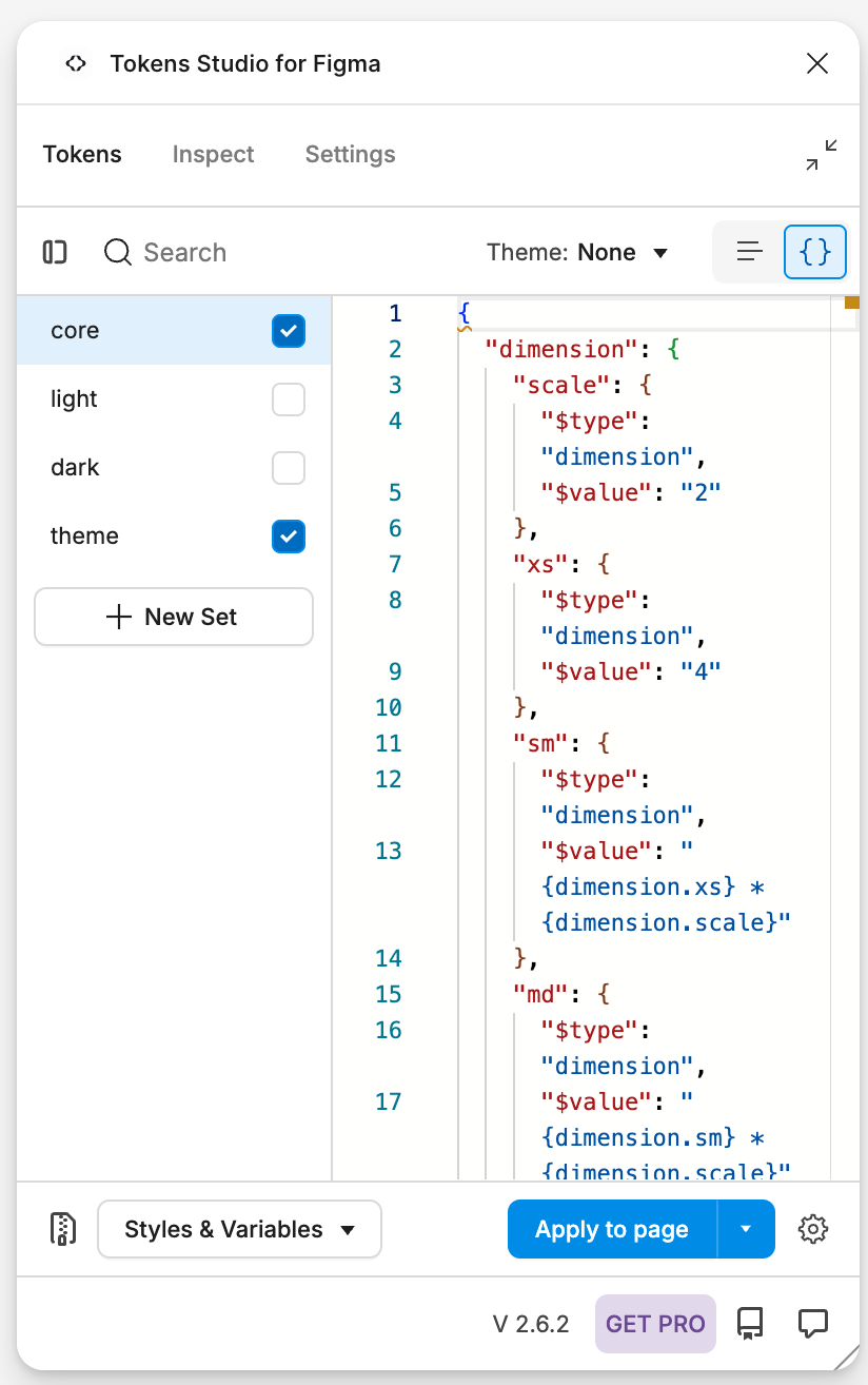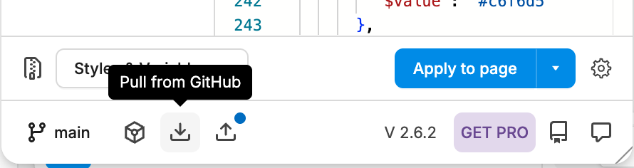 Token Studio 를 조금 더 자세히 확인해보면, 하단에 다음과 같이 바로바로 반영할 수 있도록 되어있는 것을 볼 수 있다.